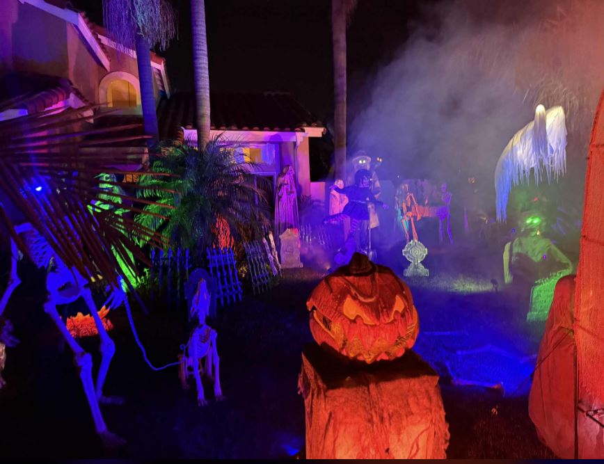 This residential home has created the most incredible Haunted Mansion display. Enjoy a 13 minute interactive show with singing pumpkins, madame Leota and ghosts. It is so well done! The show starts as soon as it’s dark every night and ends at 10:30pm. On the weekends there’s fog and an extra part to the show.