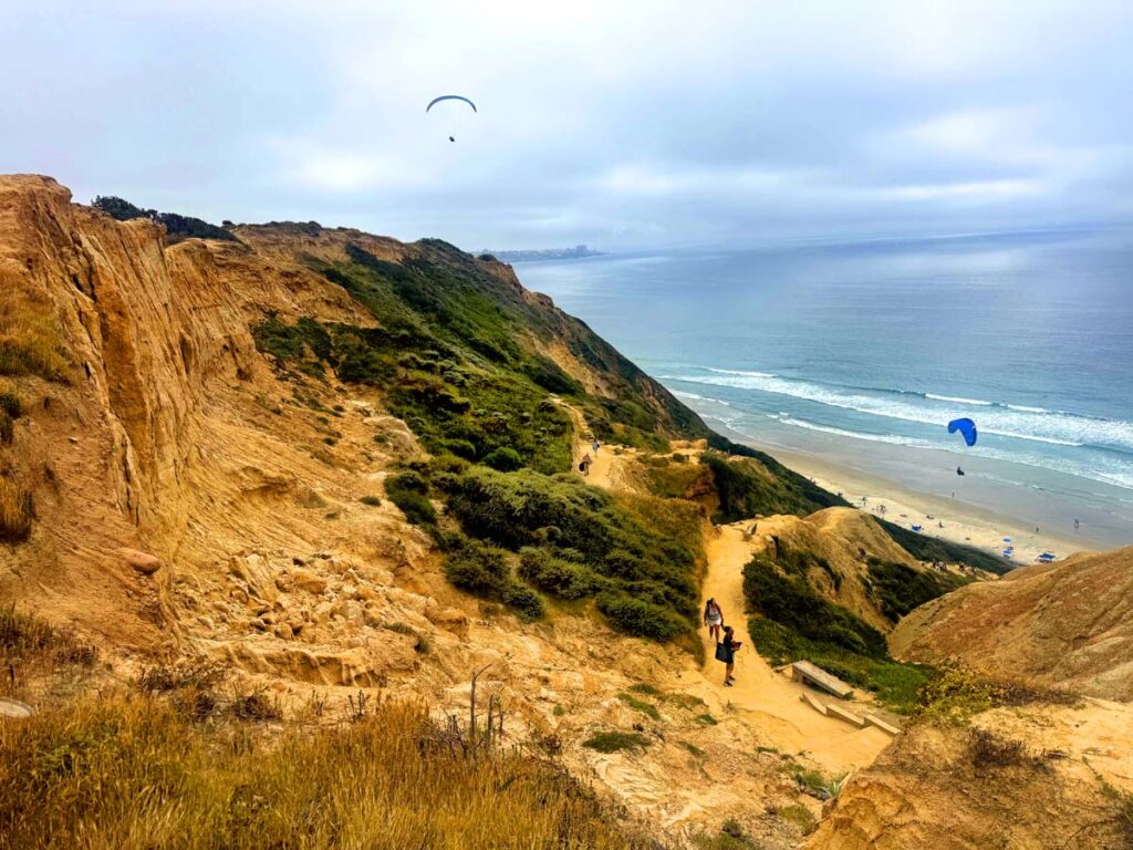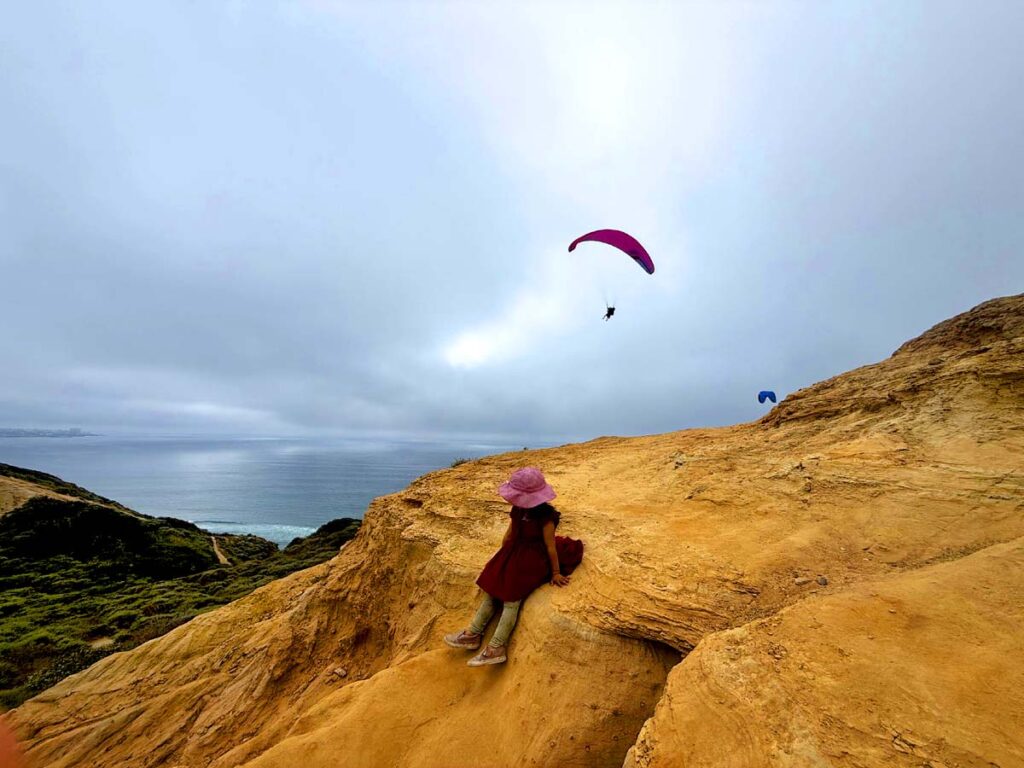 Please note: There are multiple hikes that start from the same trailhead. If you go down the cliff, you will end up at Black’s Beach. This page is specifically for the La Jolla Trail which is a straight shoot from the trailhead. Once you reach the end of the trail (which is the safest to end here and go back, especially with children) you have several options to go downhill to other secret trails.