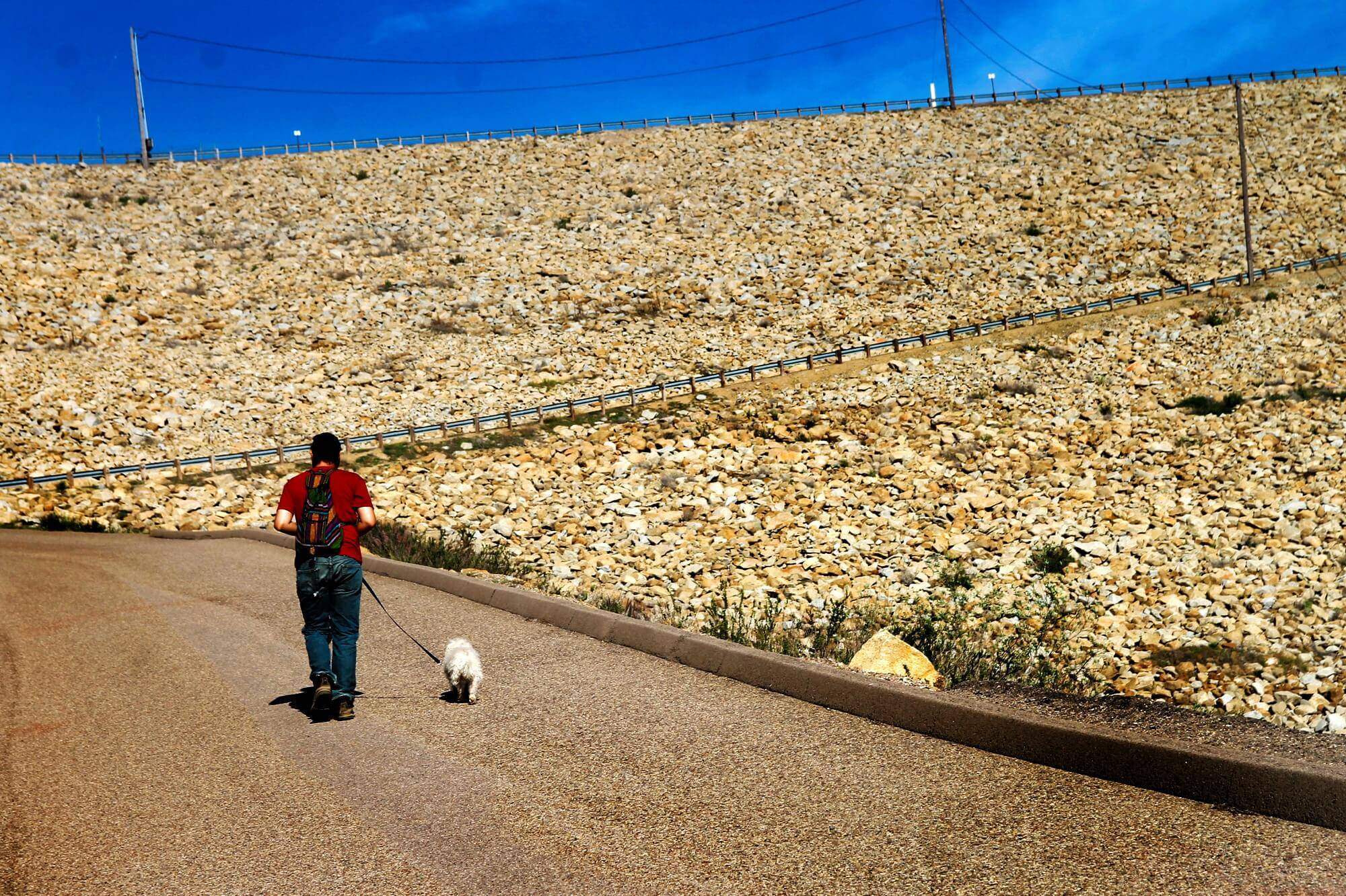 So that dam in the photo below is our destination. You must hike below into the canyon and then zigzag back up to reach it. 1-way is almost 3 miles: