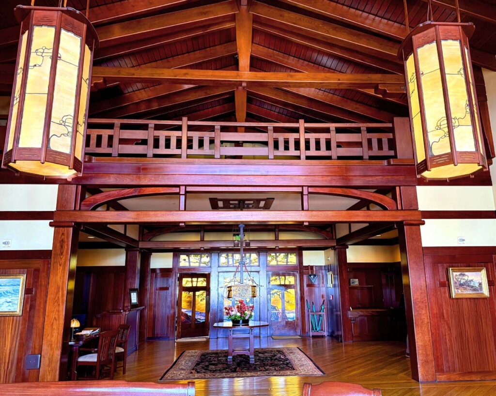 The unbeatable ocean views and rare Torrey Pines that grow on the property make this feel more like the coast of Central California. Add the rustic wooden structures throughout the property and stone fireplaces and it really feels like you’re in Monterey.