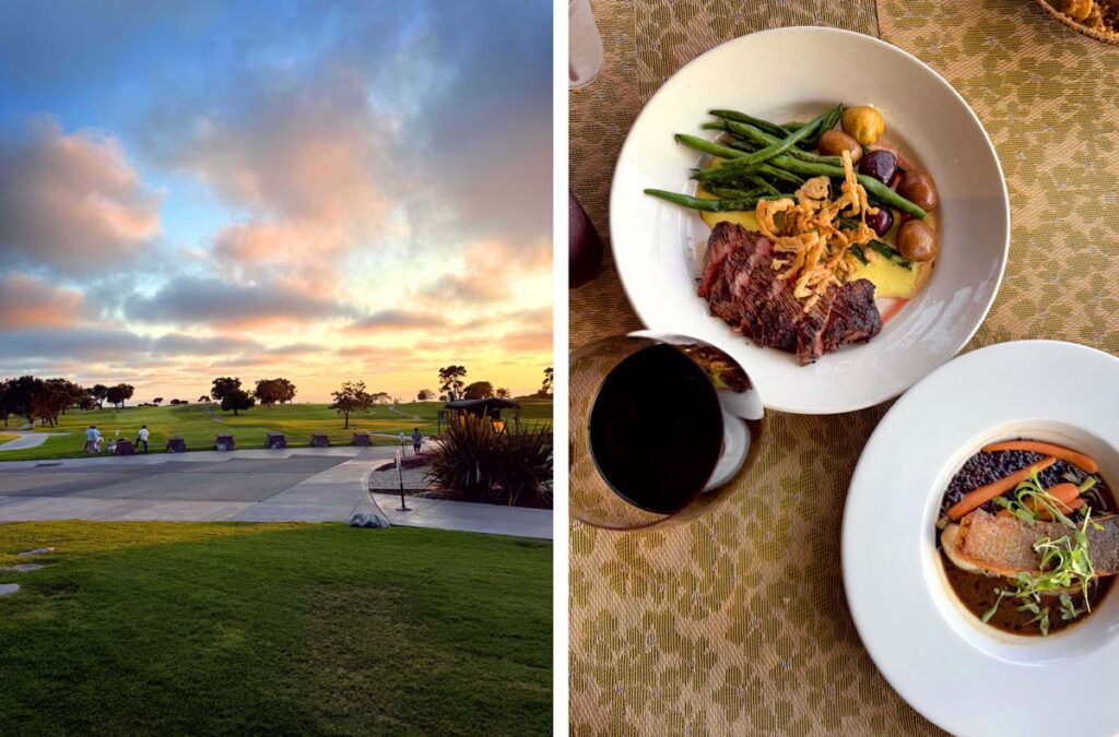 The Grill at Torrey Pines offers wood-fired specialties paired with local craft brews. Its inviting outdoor patio, complete with cozy fire pits, makes for the perfect spot to relax and savor nightly sunsets.